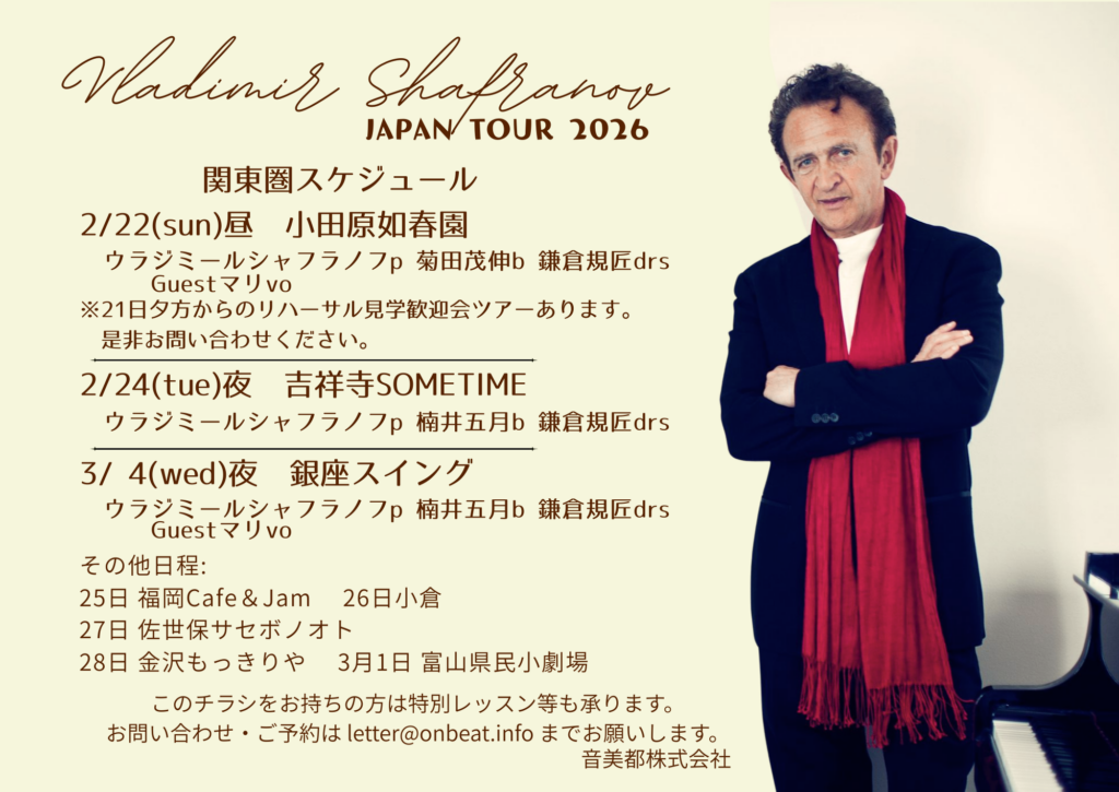 2月末にウラジミールシャフラノフ氏とのツアーが決まりました。